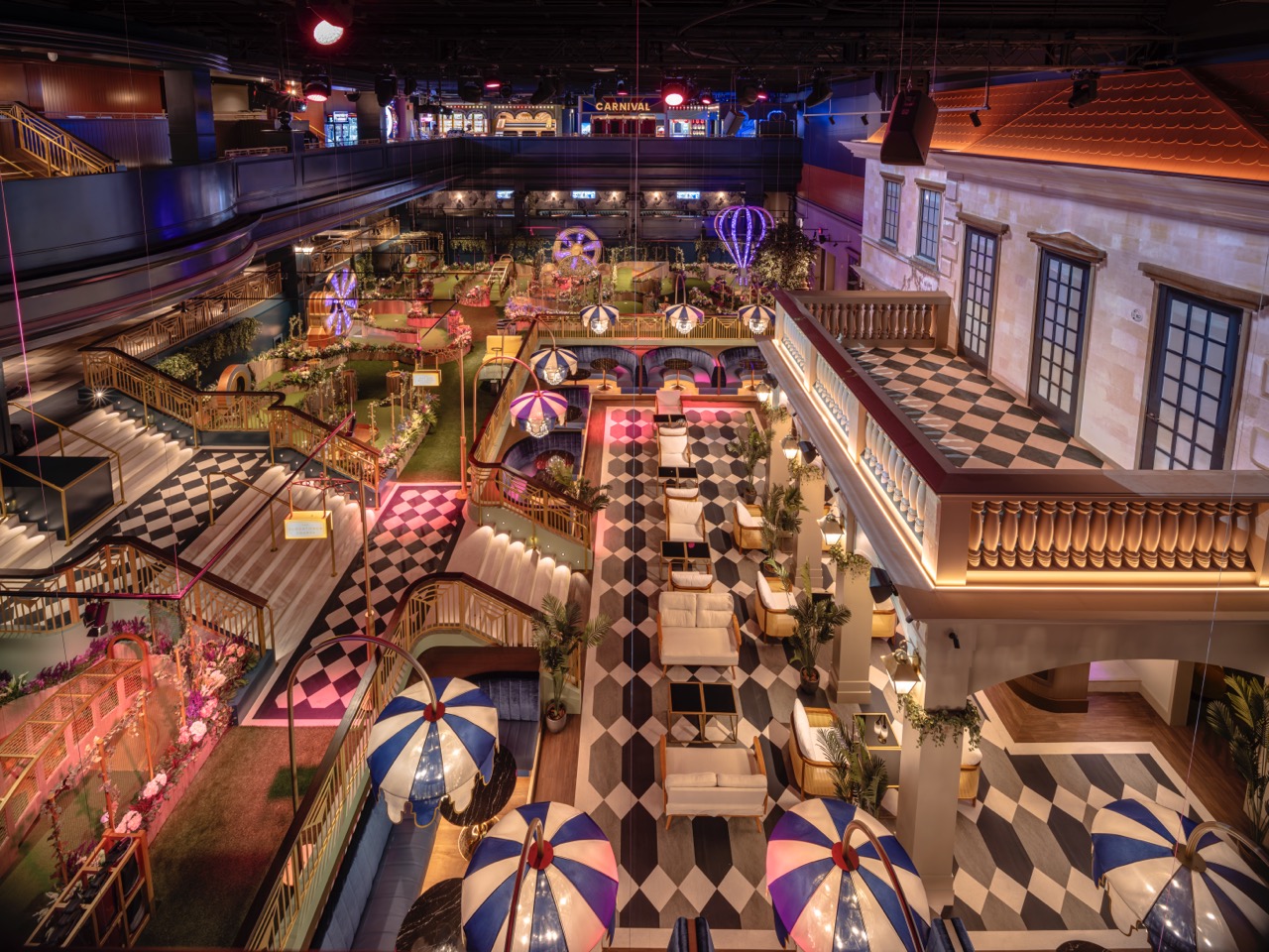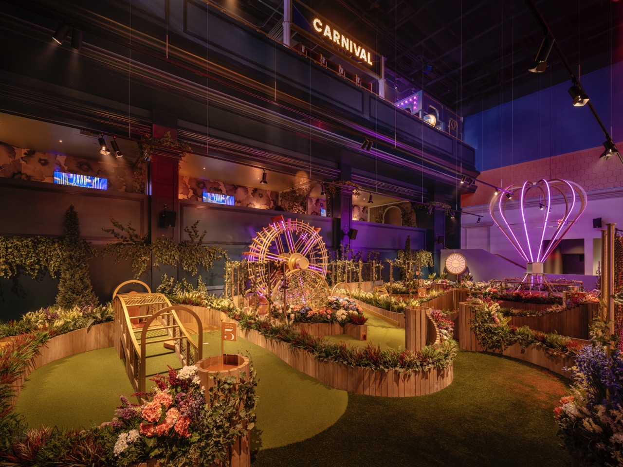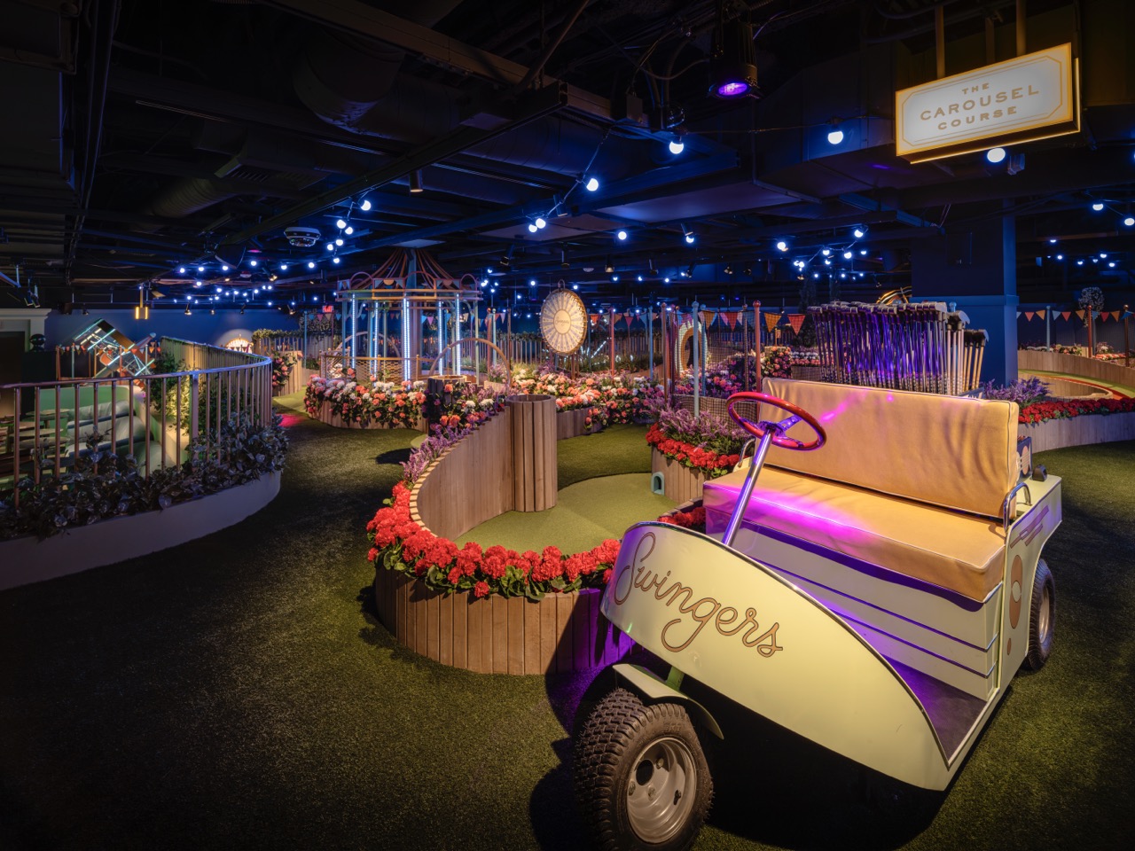 Swingers Las Vegas features four 9-hole golf courses, multiple bars, a fairground-style Carnival games arcade, and a 1920s-style English country house – which acts as the visual and experiential centrepiece of the venue.